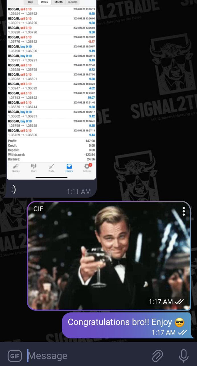 - Free copy of the Telegram signals from Lennard